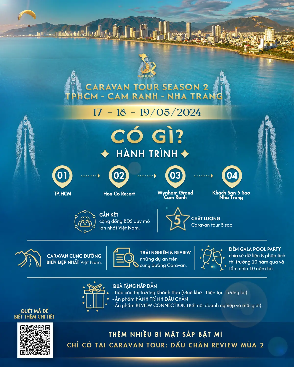 Ban tổ chức chương trình Dấu chân Review cho biết tiếp nối sự thành công Season 1 của Series Caravan Review Bất động sản, Season 2 được tổ chức với hành trình từ Thành phố Hồ Chí Minh – Khánh Hòa, Nha Trang, trong chuyến đi tiếp theo này.